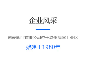 凱豪閥門(mén)有限公司位于溫州海濱工業(yè)區(qū),企業(yè)占地面積20000平方米。初建于 1985 年,注冊(cè)資金5008萬(wàn);工廠(chǎng)主要生產(chǎn) ANSL、JIS、DIN 和 GB 標(biāo)準(zhǔn)的閘閥、截止閥、止回閥、球閥、蝶閥、