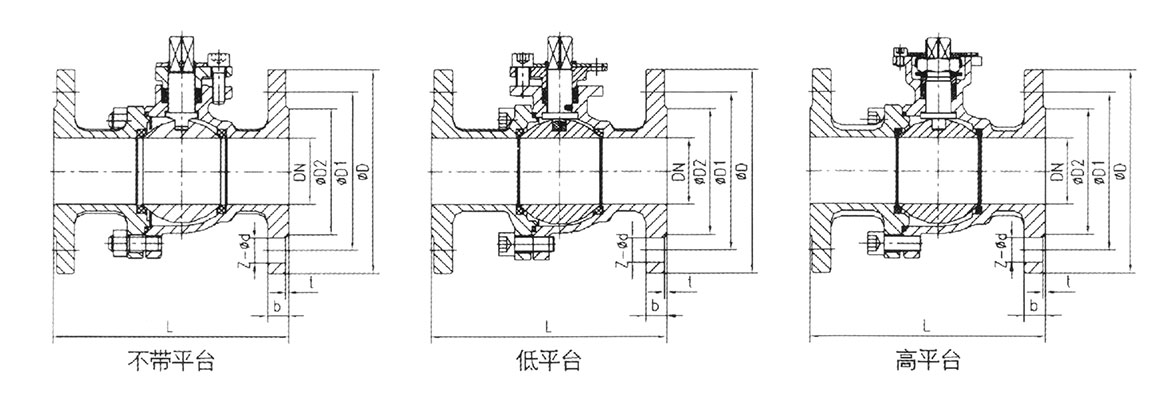 公稱通徑 DN(mm) | L | D | D1 | D2 | b | f | Z-Φd | |